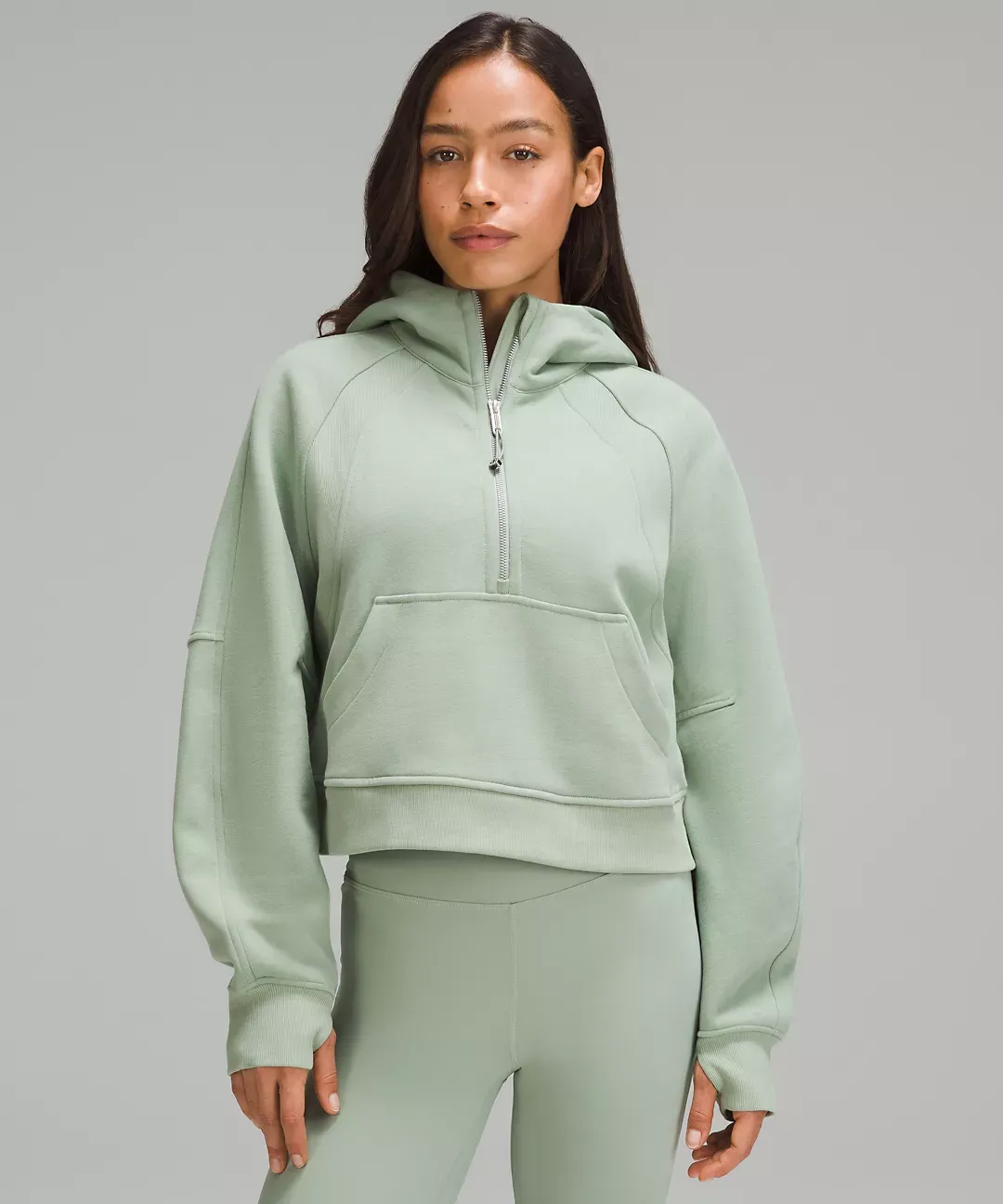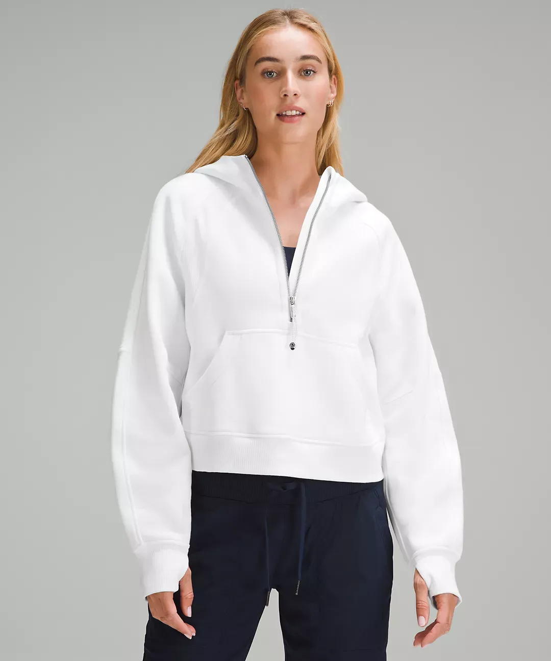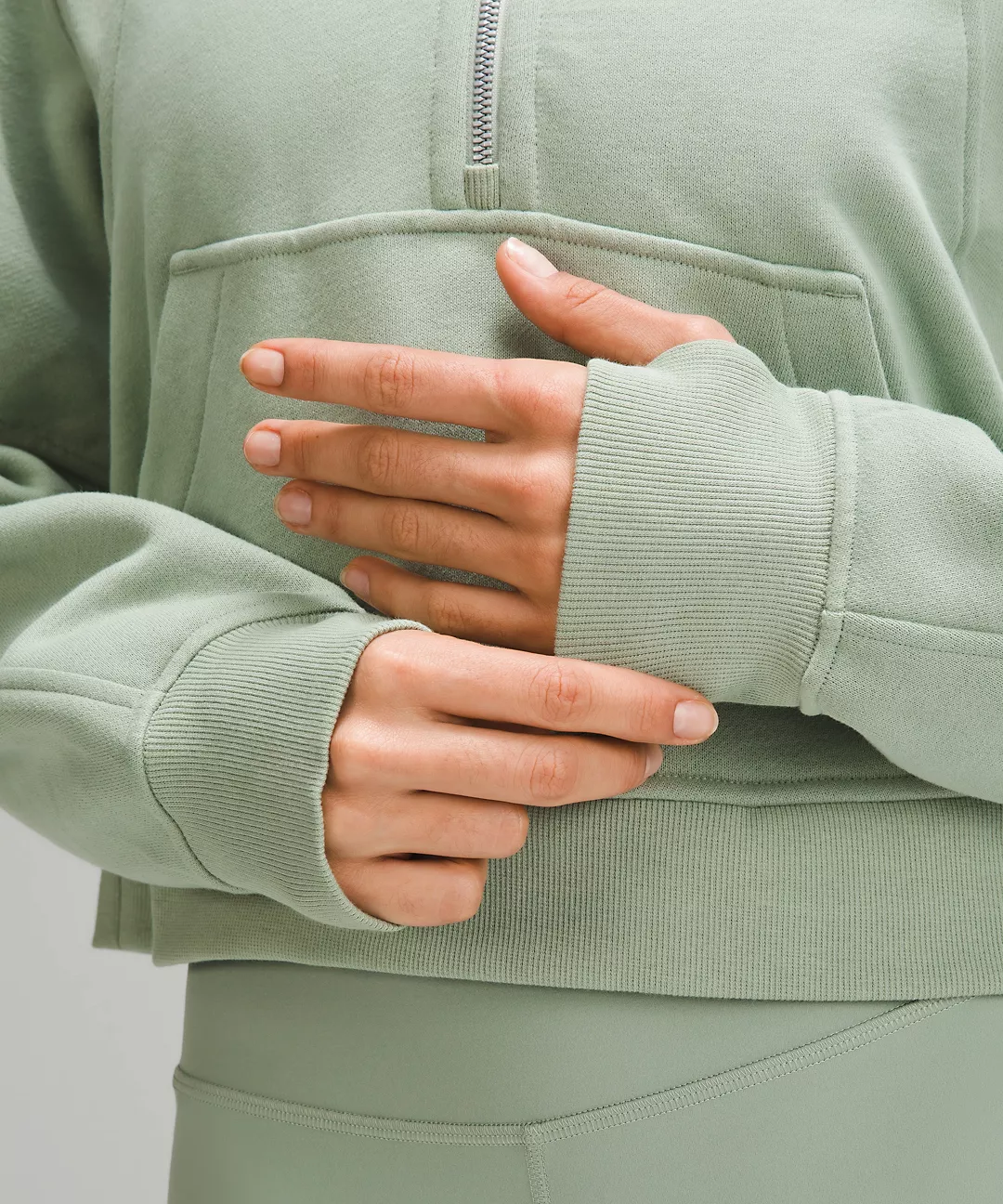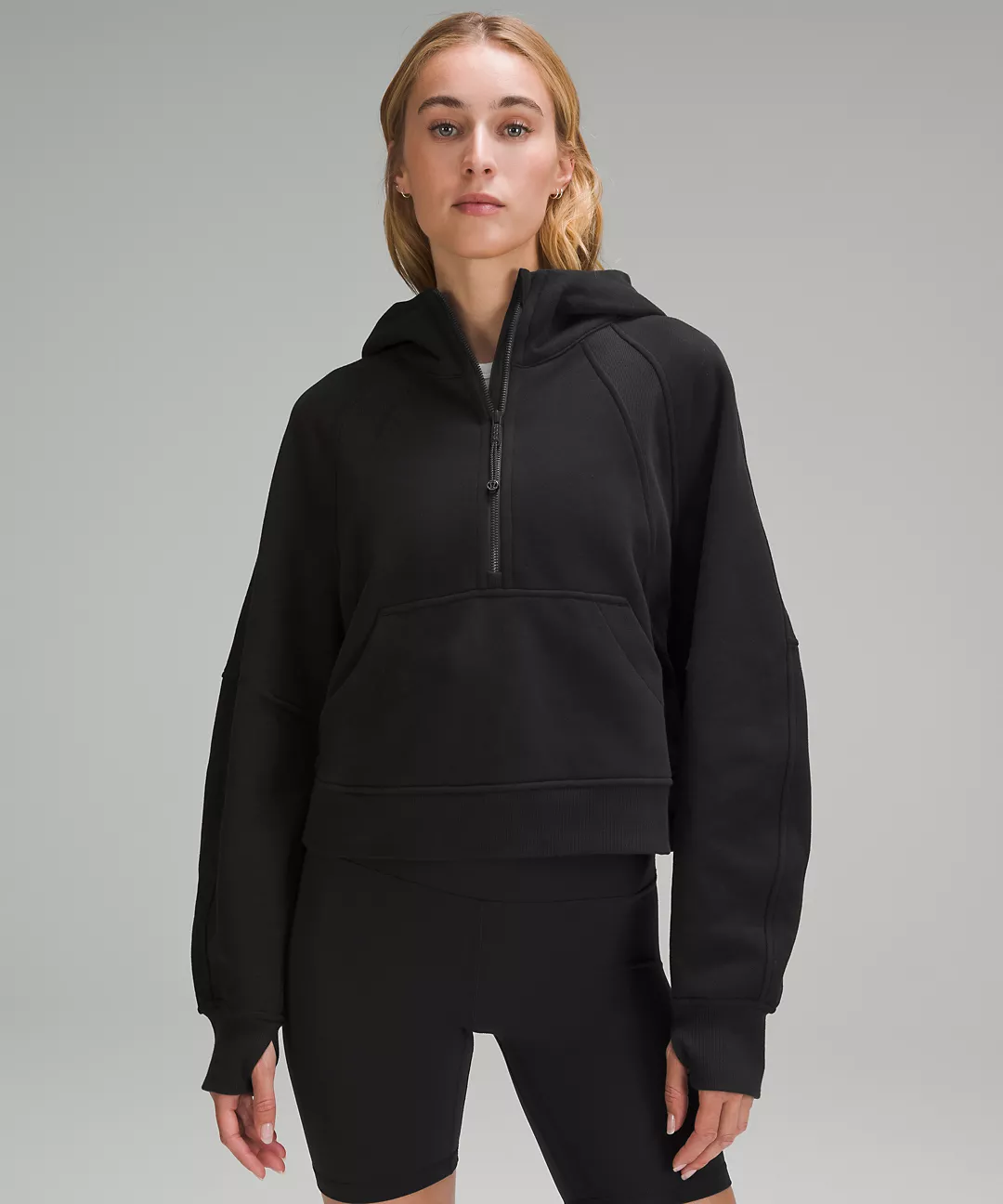 - Kangaroo pocket with hidden phone sleeve